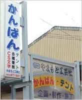 | 営業範囲 | 全国 のぼり旗、横断幕、懸垂幕、既製品看板の販売 大阪府 奈良県 看板、テントの製作・取付・撤去工事 のぼり旗、横断幕、懸垂幕の取付・撤去工事 |